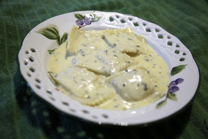 The Crab/Lobster Ravioli were from the freezer section at the market. The Alfredo sauce was created by Karly at BunsInMyOven